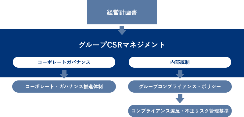 国内外の各種法令や社会規範、会社規定ならびに契約合意事項の順守に向け、「グループコンプライアンス・ポリシー」、「グループコンプライアンス違反・不正リスク管理基準」に則して、明確な違反行為はもとより、違反が示唆あるいは違反とみなされる行為が予見される場合には、これを回避することができる体制を構築します。