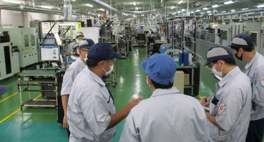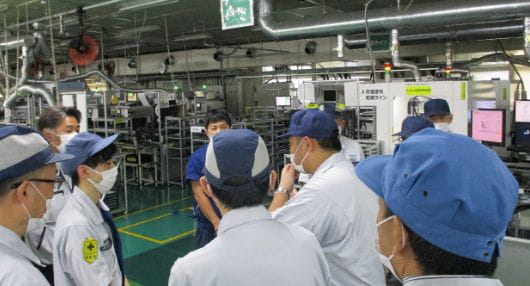 「お客様要求品質第一」の活動を更に研鑽し、より徹底した活動とするために、社長自らが自身で制定した「お客様要求品質第一」を実践し、傍楽仲間達皆と”ものさし”を合わせる場として「社長品質総点検」をグループ全拠点のものづくり現場で実施しています。
